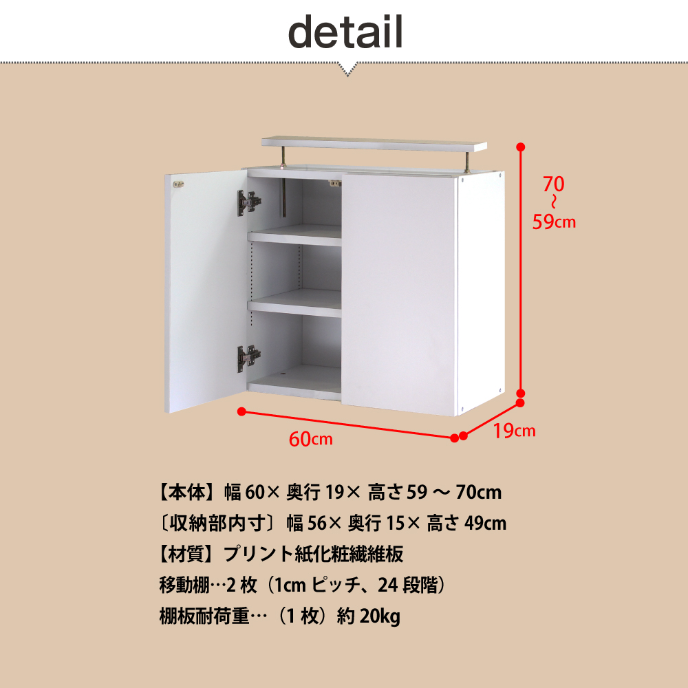 【本体】幅60×奥行19×高さ59~70cm