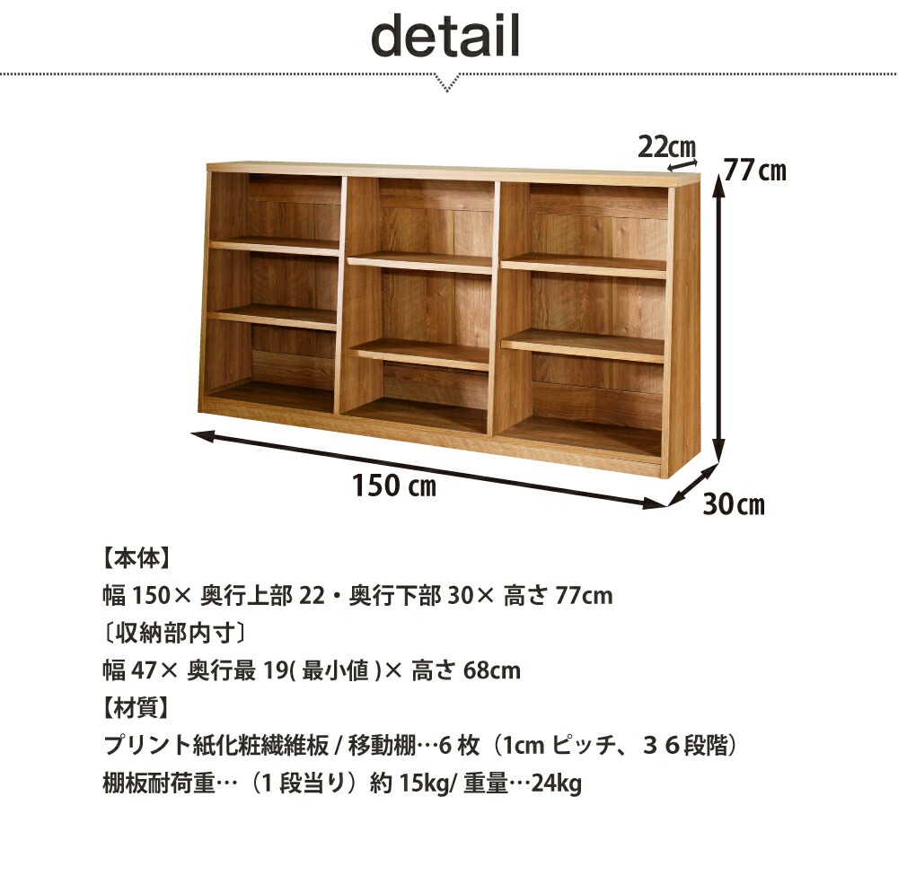 脚元安定 頑丈ロータイプ書棚 幅150cm 本棚 おしゃれ 大容量 収納 薄型 書棚 ブックシェルフ bmn-150l