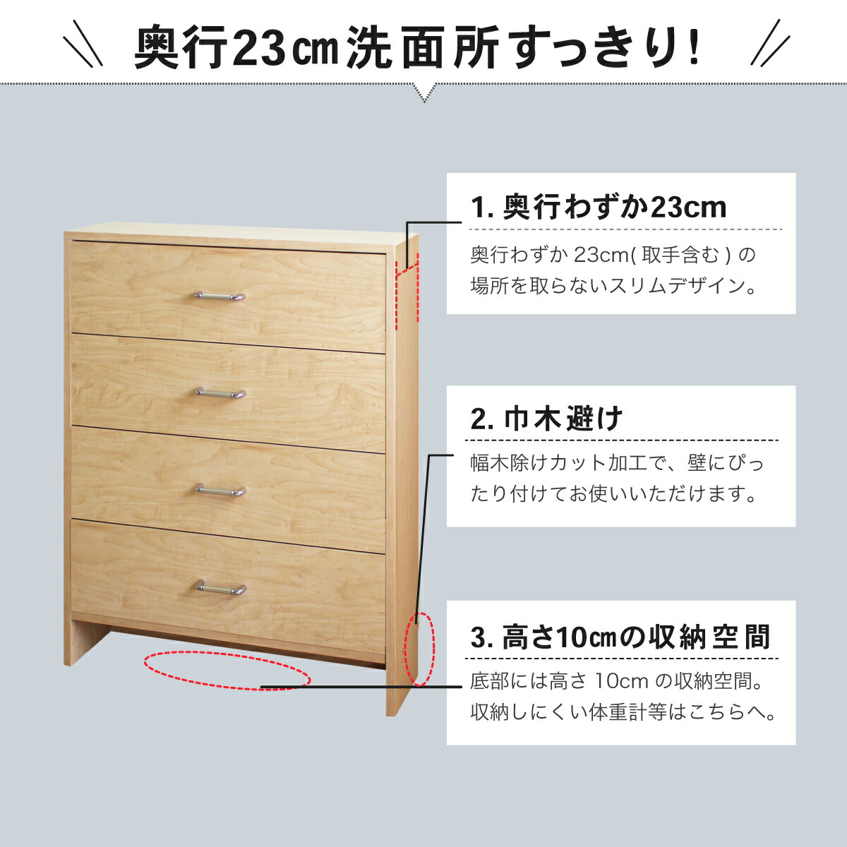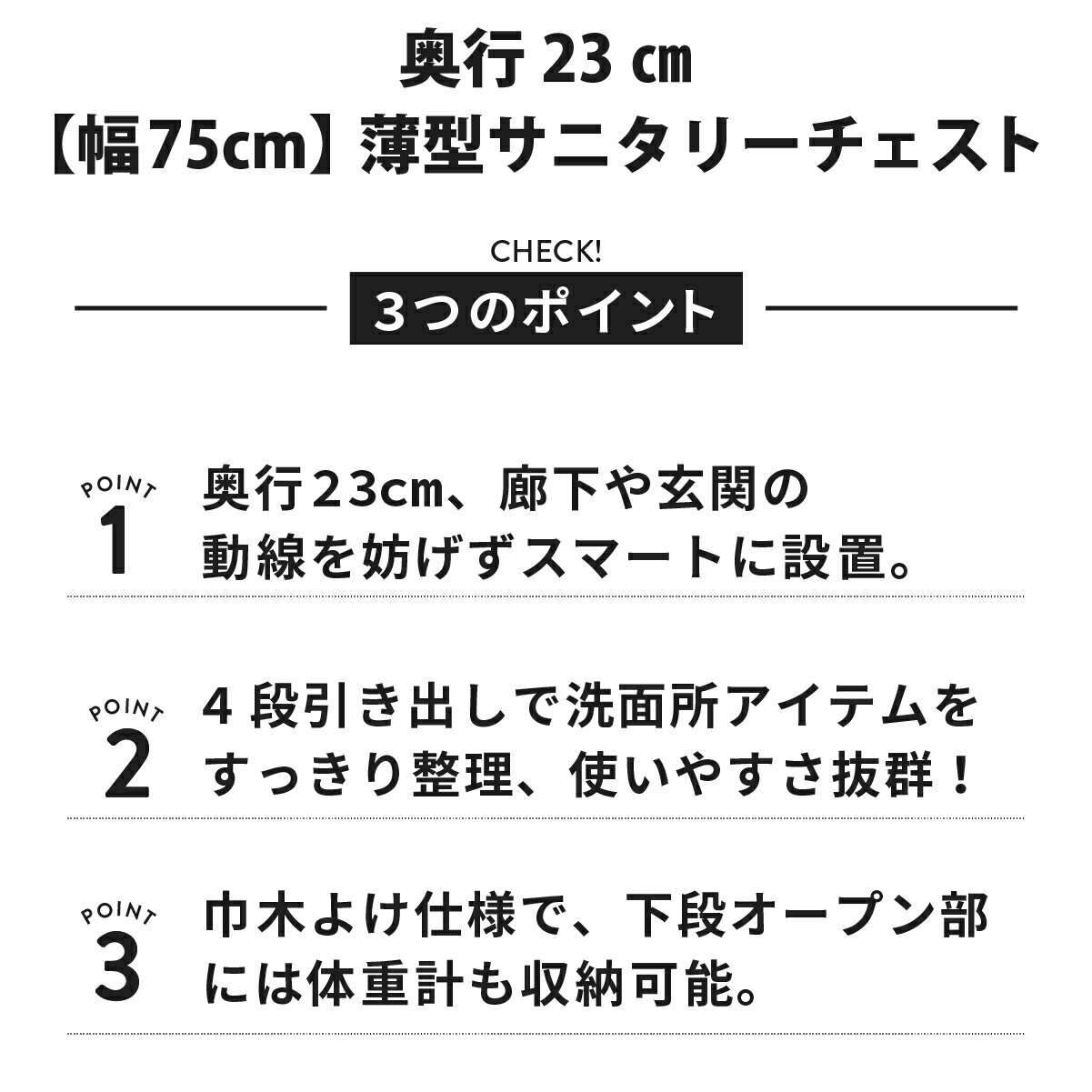 サニタリーチェスト 薄型 奥行23cm 幅75cm 高さ92cm nlr-75