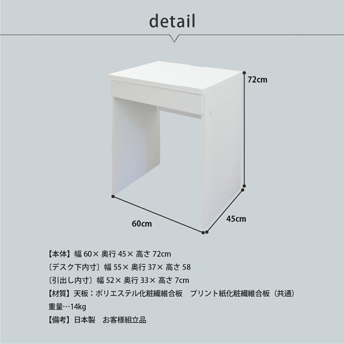 コンパクト デスク 幅60cm 奥行45cm 高さ58cm dw-645