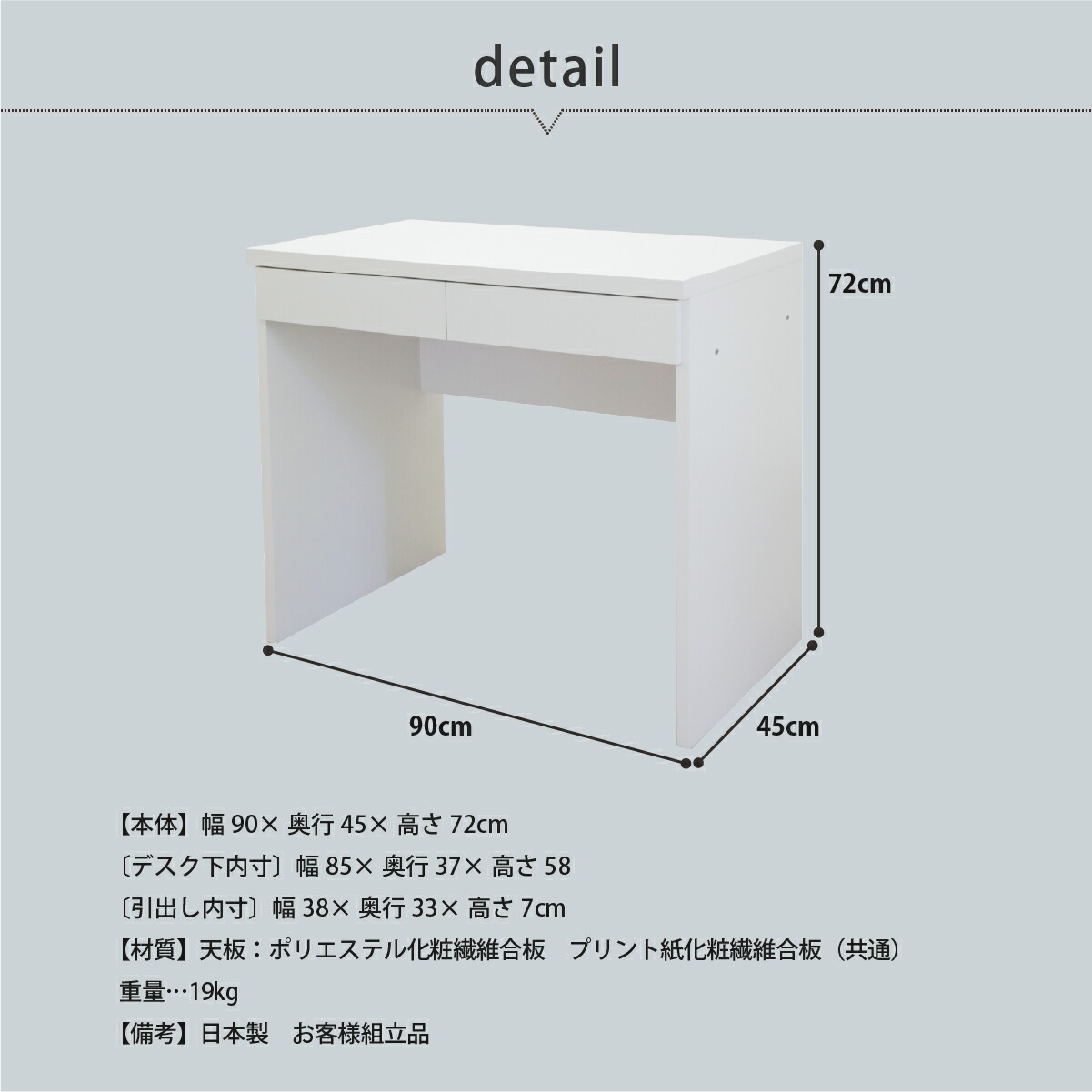 コンパクト デスク 幅90cm 奥行45cm 高さ58cm dw-945
