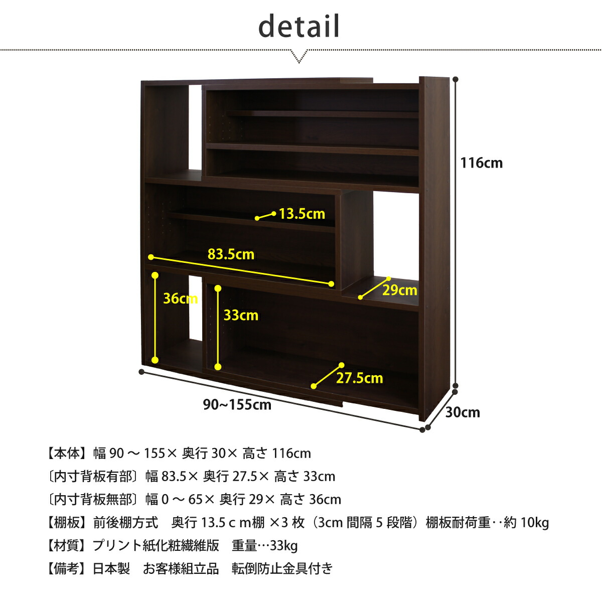 【本体】幅90~155×奥行30×高さ116cm