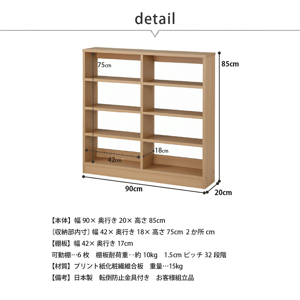 奥行き選べる背板オープン腰高本棚 幅90cm 奥行20cm 高さ85cm kb-92