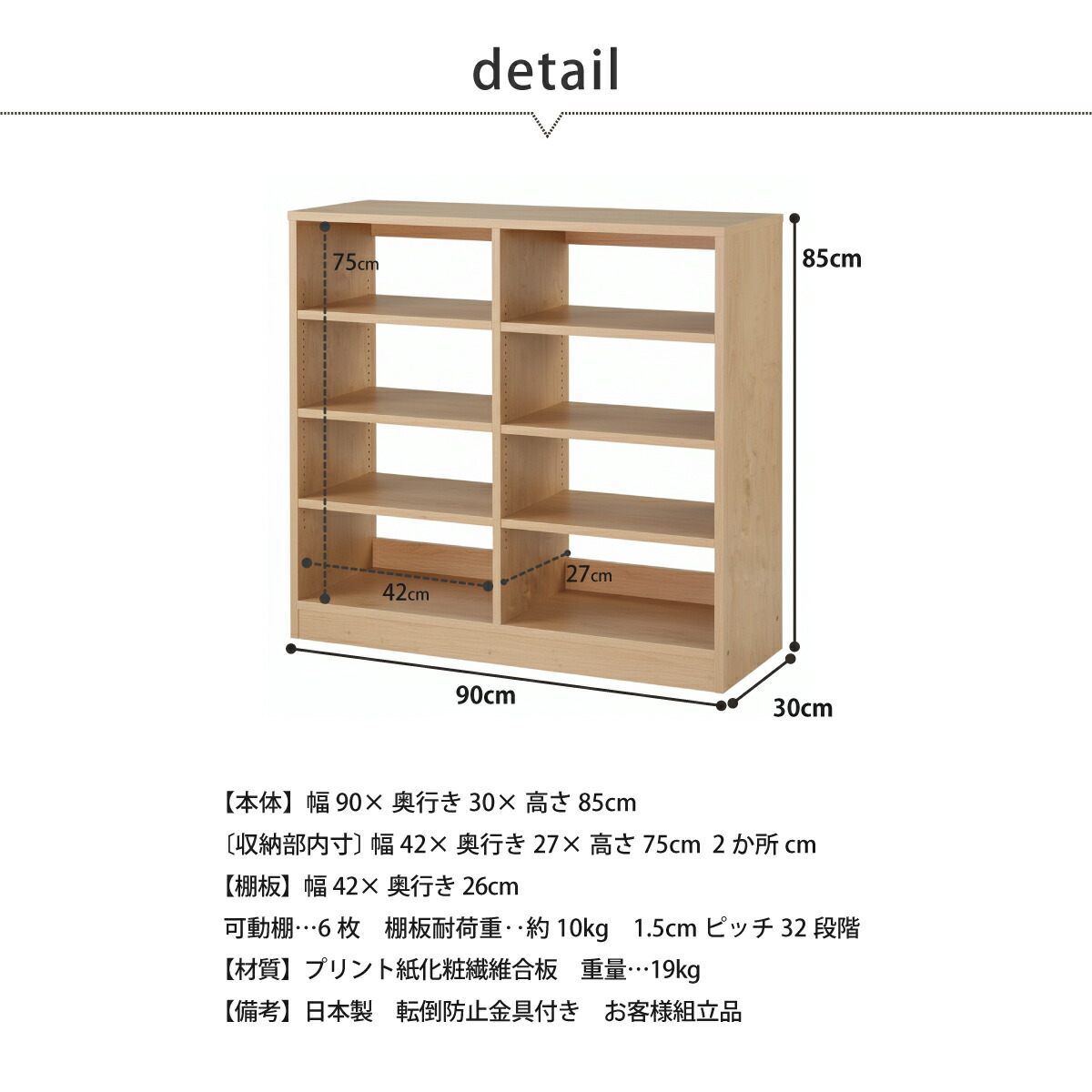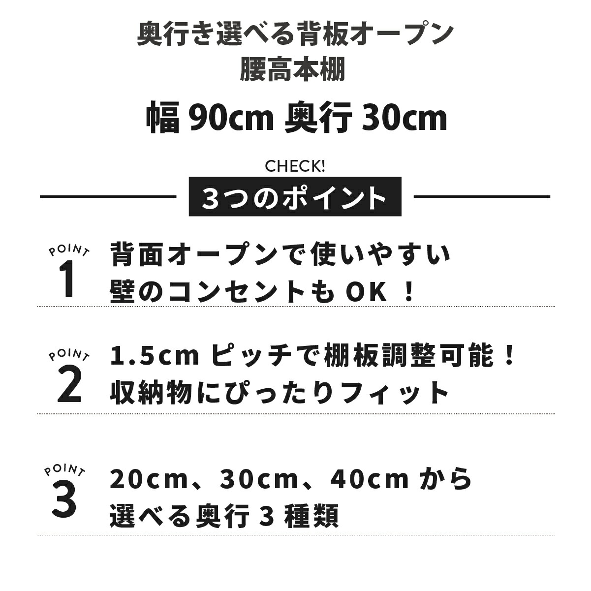 奥行き選べる背板オープン腰高本棚 幅90cm 奥行30cm 高さ85cm kb-93