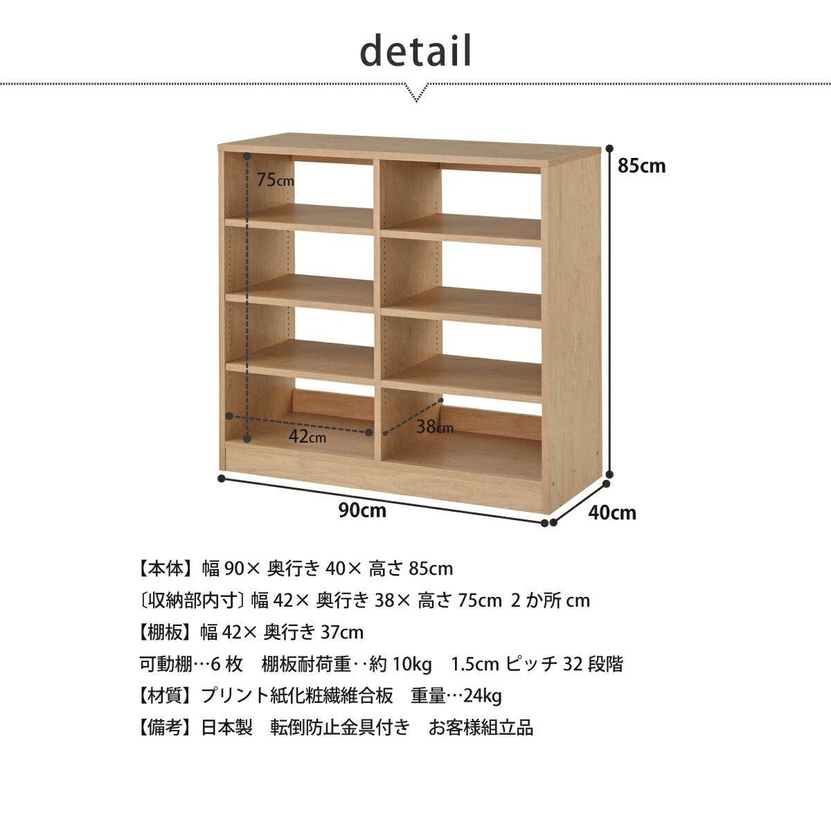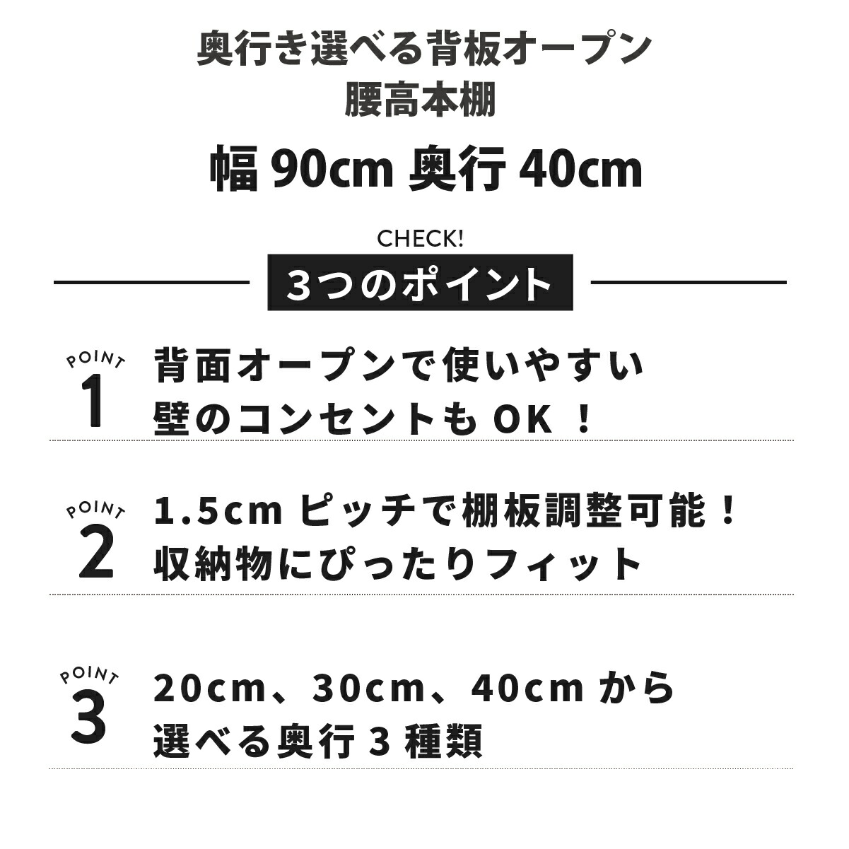 奥行き選べる背板オープン腰高本棚 幅90cm 奥行40cm 高さ85cm kb-94