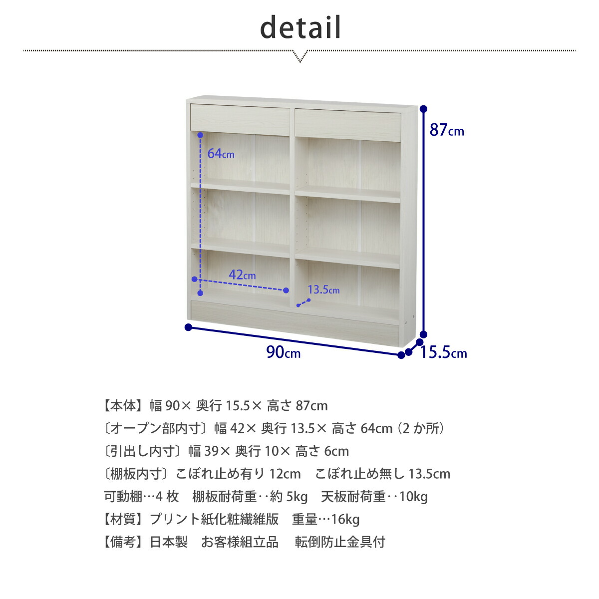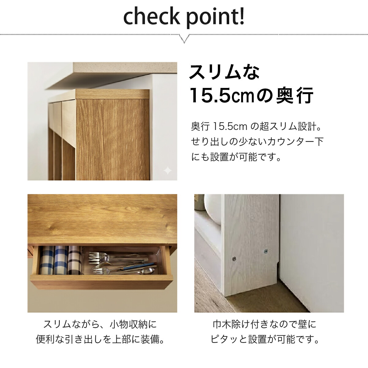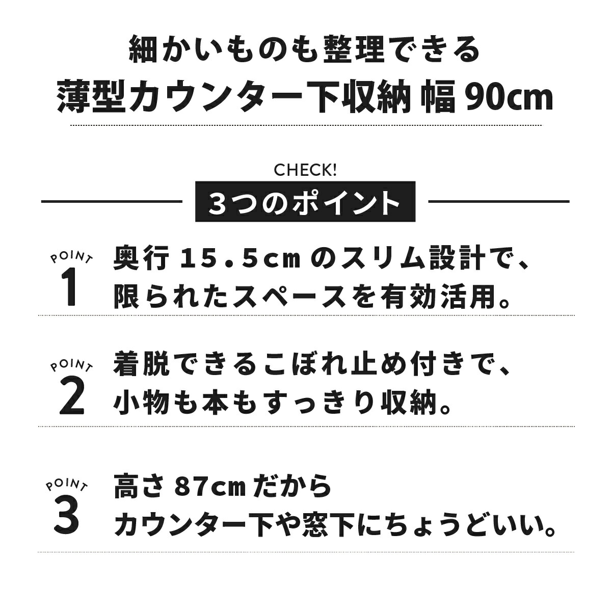 細かいものも整理できる 薄型カウンター下収納 幅90cm 奥行15.5cm 高さ87cm kuh-90