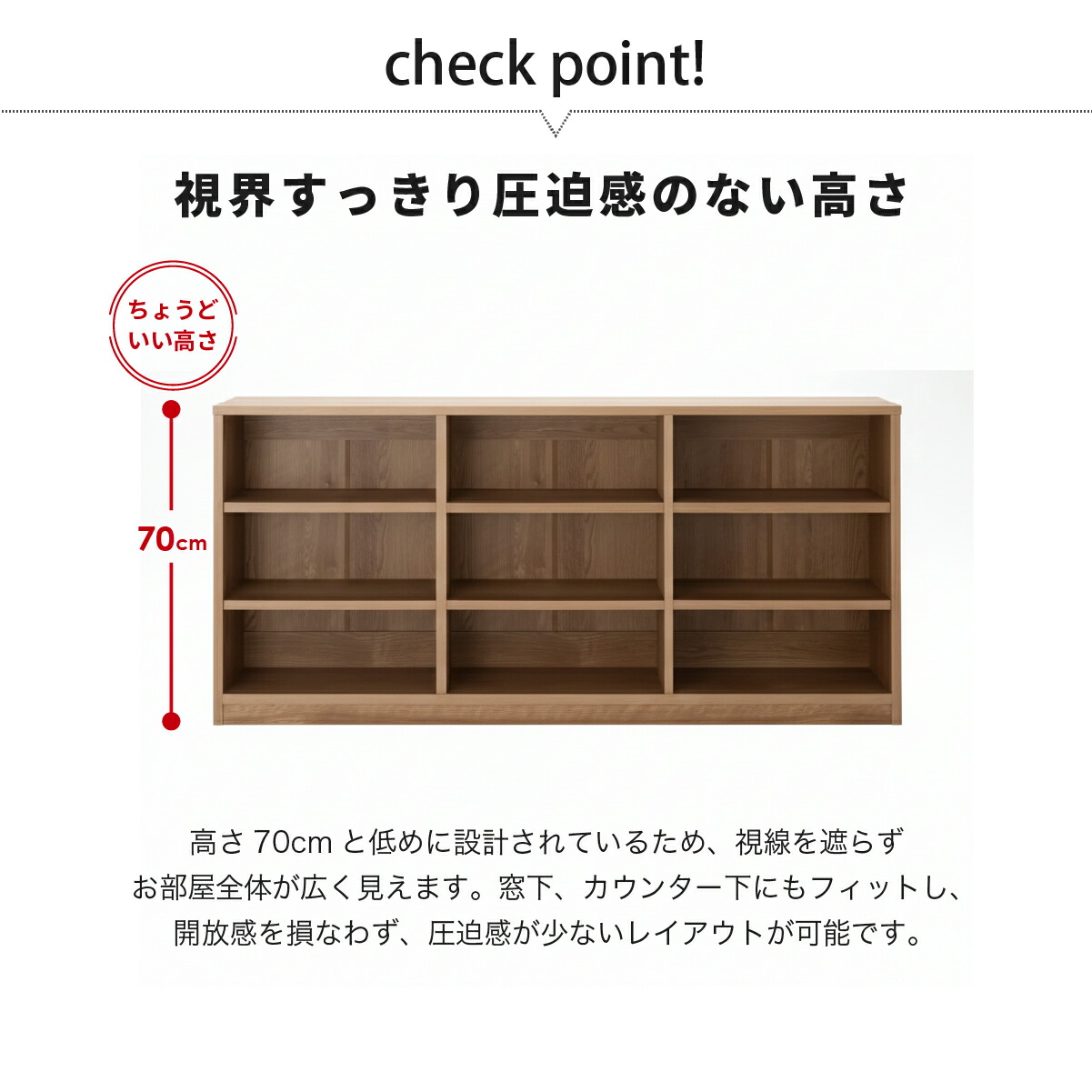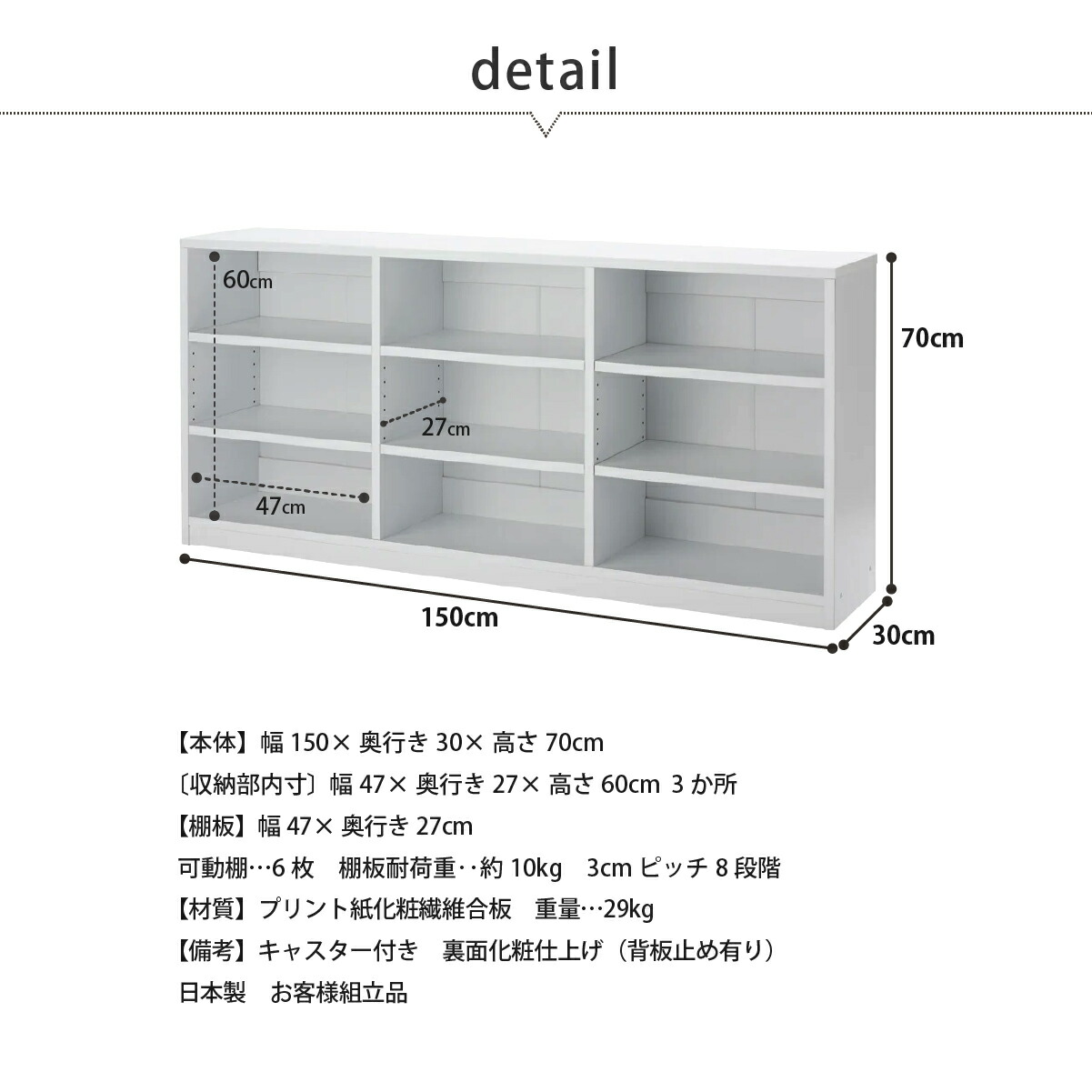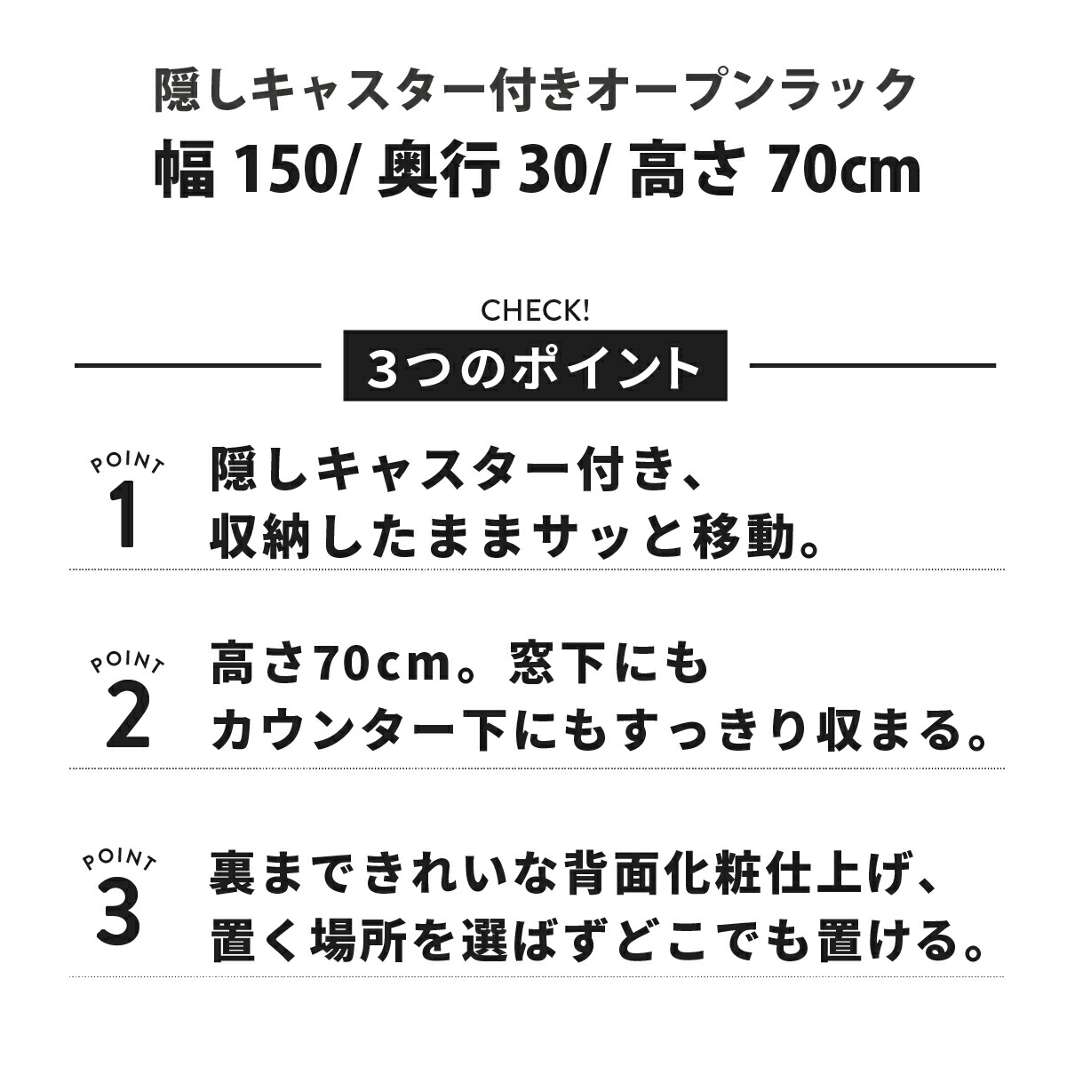 隠しキャスター付きオープンラック 幅150cm 奥行30cm 高さ70cm cr-153