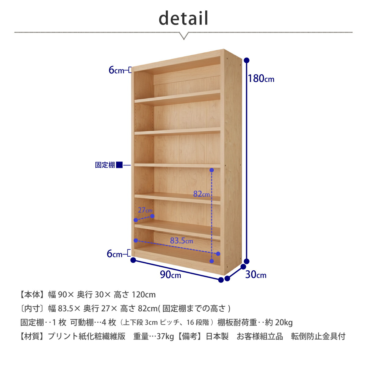 頑丈棚板がっちり本棚 幅90cm 高さ180cm 奥行30cm gh-90