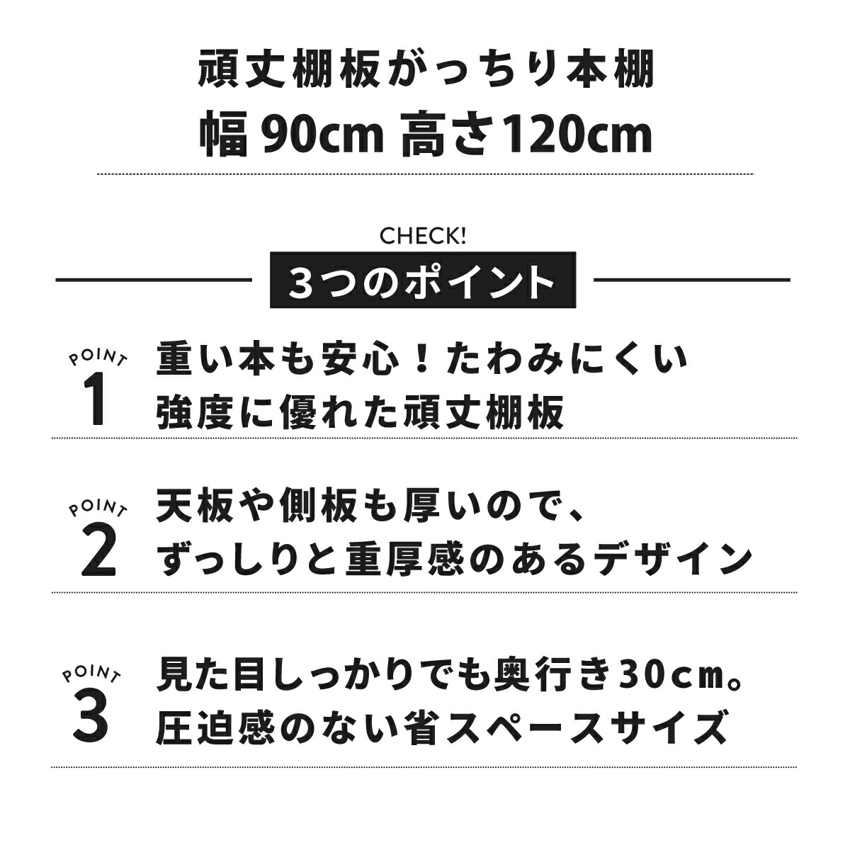 頑丈棚板がっちり本棚 幅90cm 高さ120cm 奥行30cm gh-90m