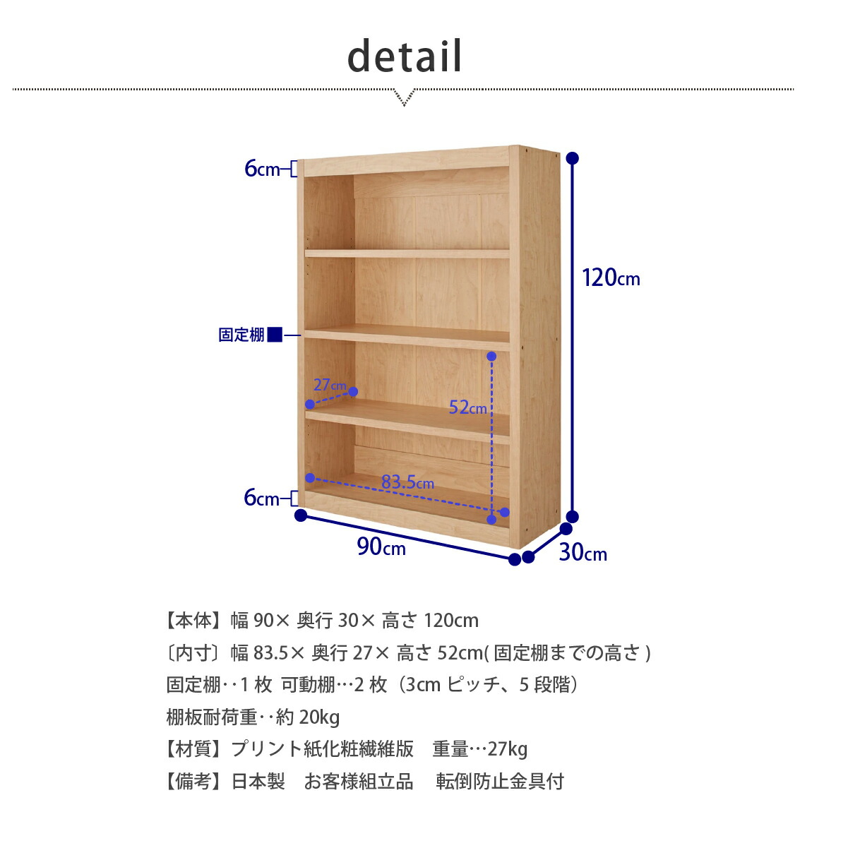 [内寸]幅83.5×奥行27×高さ52cm