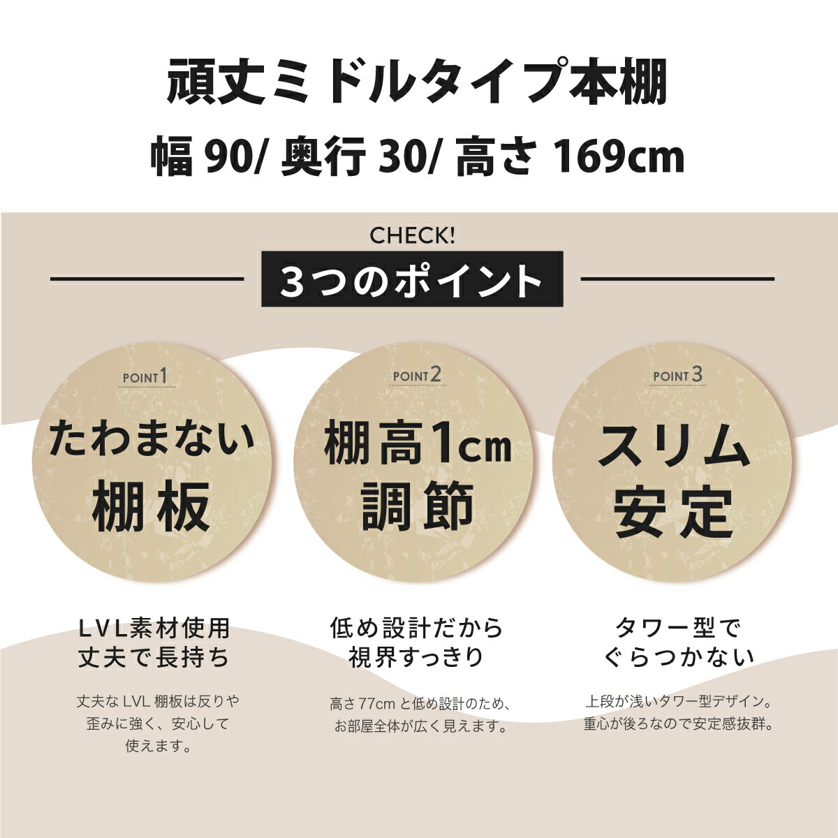 頑丈ミドルタイプ本棚 幅90cm 高さ169cm 奥行30cm bmn-90m
