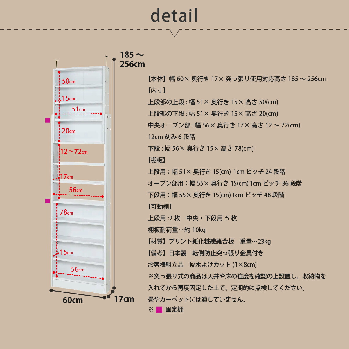 【サイズ】[本体]幅60cm×奥行き17cm×突っ張り使用対応高さ185~256cm