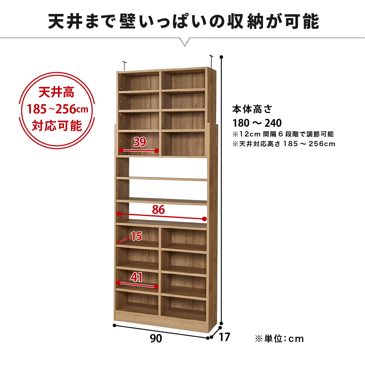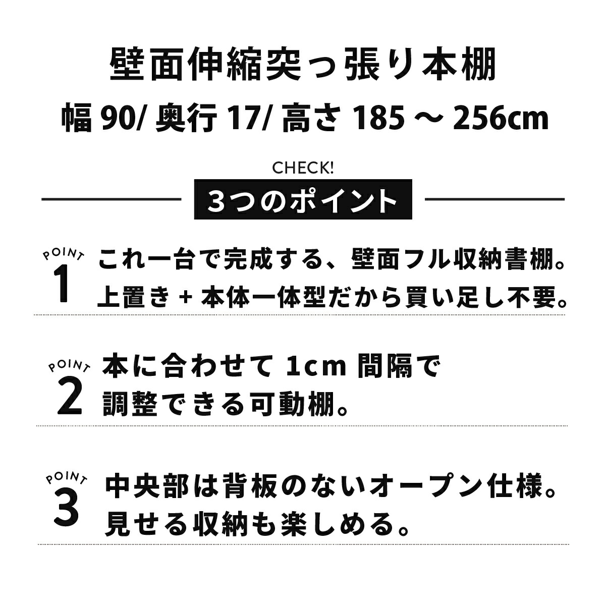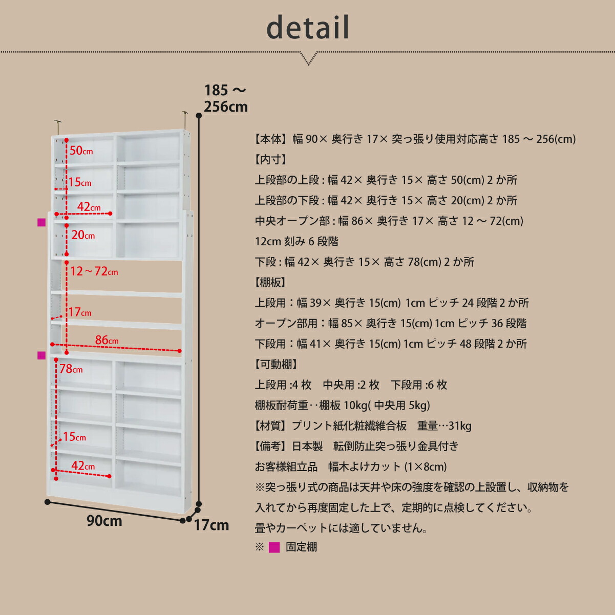 【サイズ】[本体]幅90cm×奥行き17cm×突っ張り使用対応高さ185~256cm