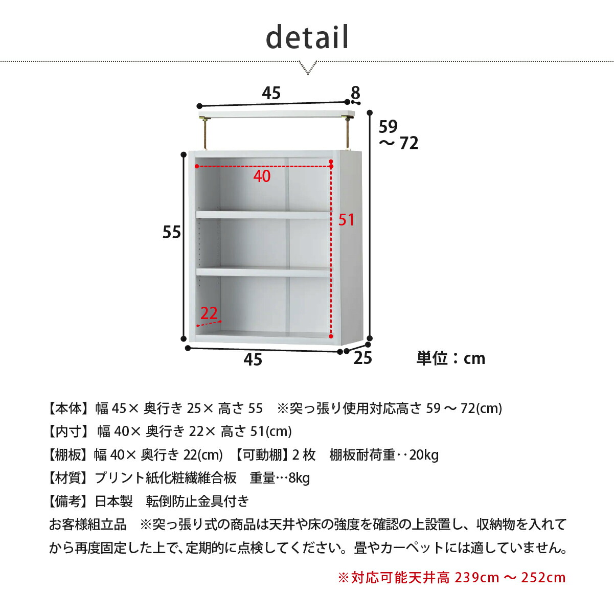 【サイズ】[本体]幅45cm×奥行き25cm×突っ張り使用対応高さ59~72cm