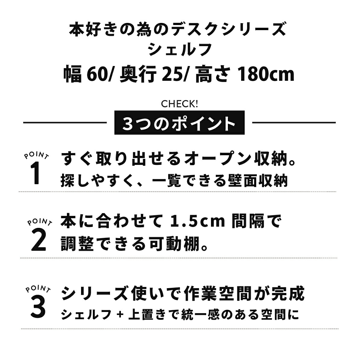書棚付きデスクシリーズ シェルフ 幅60cm 奥行き25cm 高さ180cm hdk-60
