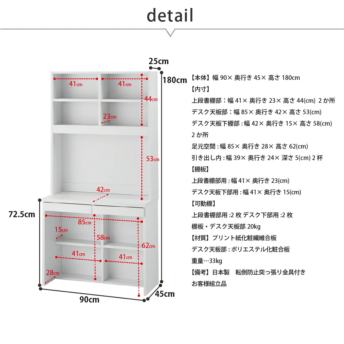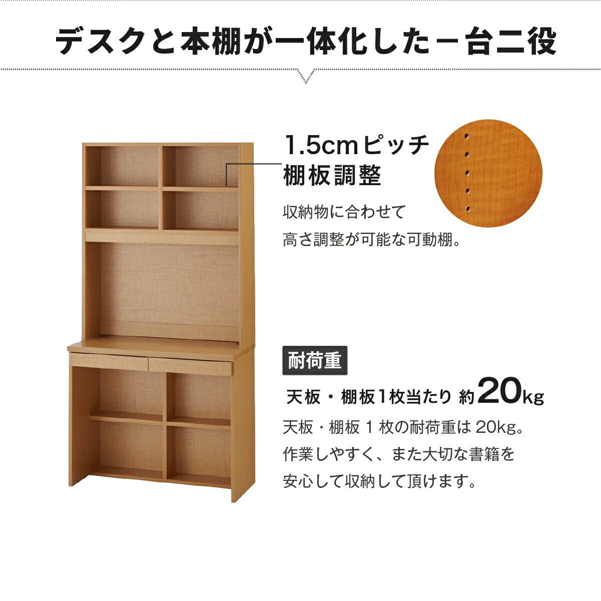 書棚付きデスクシリーズ デスク 幅90cm 奥行き45cm 高さ180cm hdk-90
