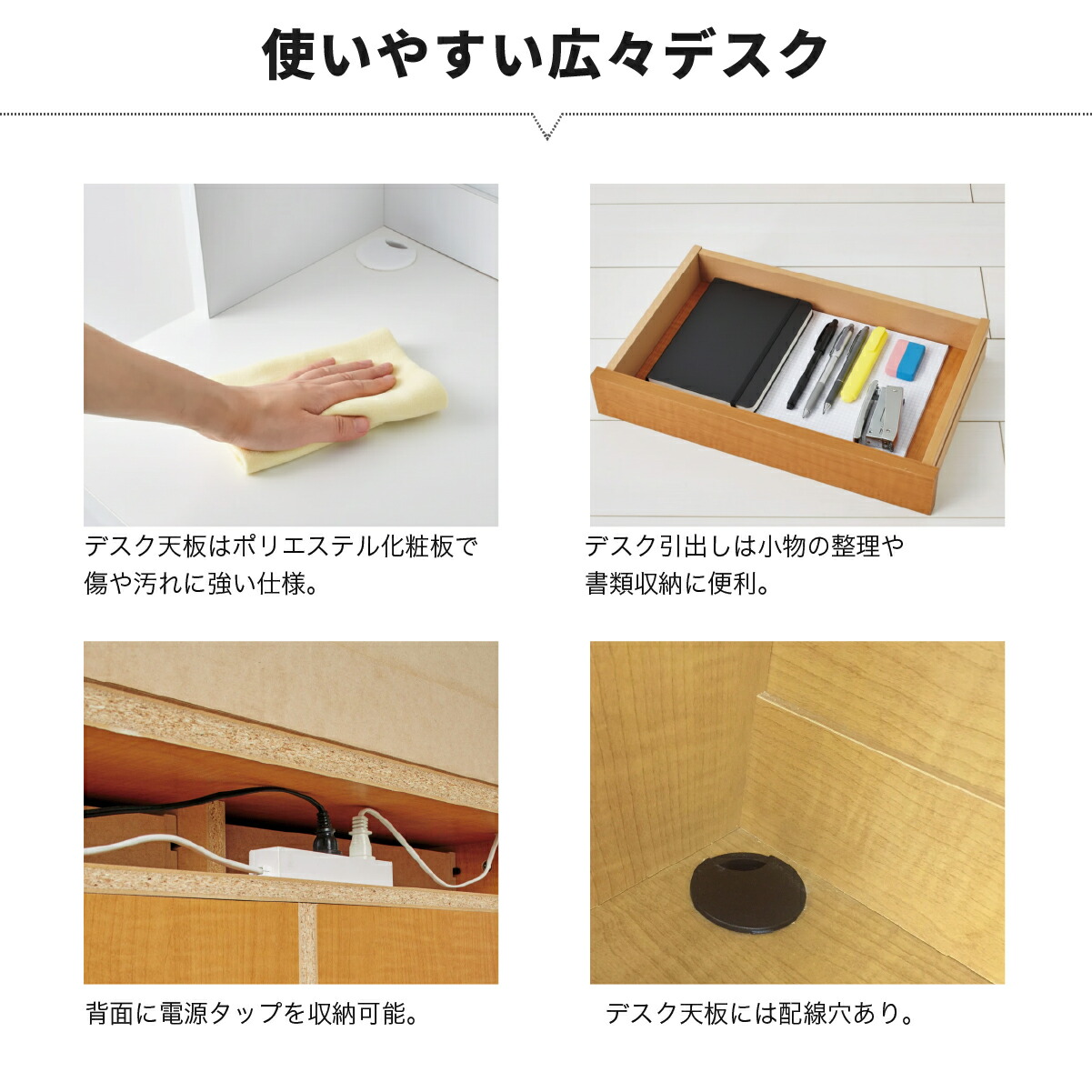 【材質】プリント紙化粧繊維合板、デスク天板部:ポリエステル化粧合板