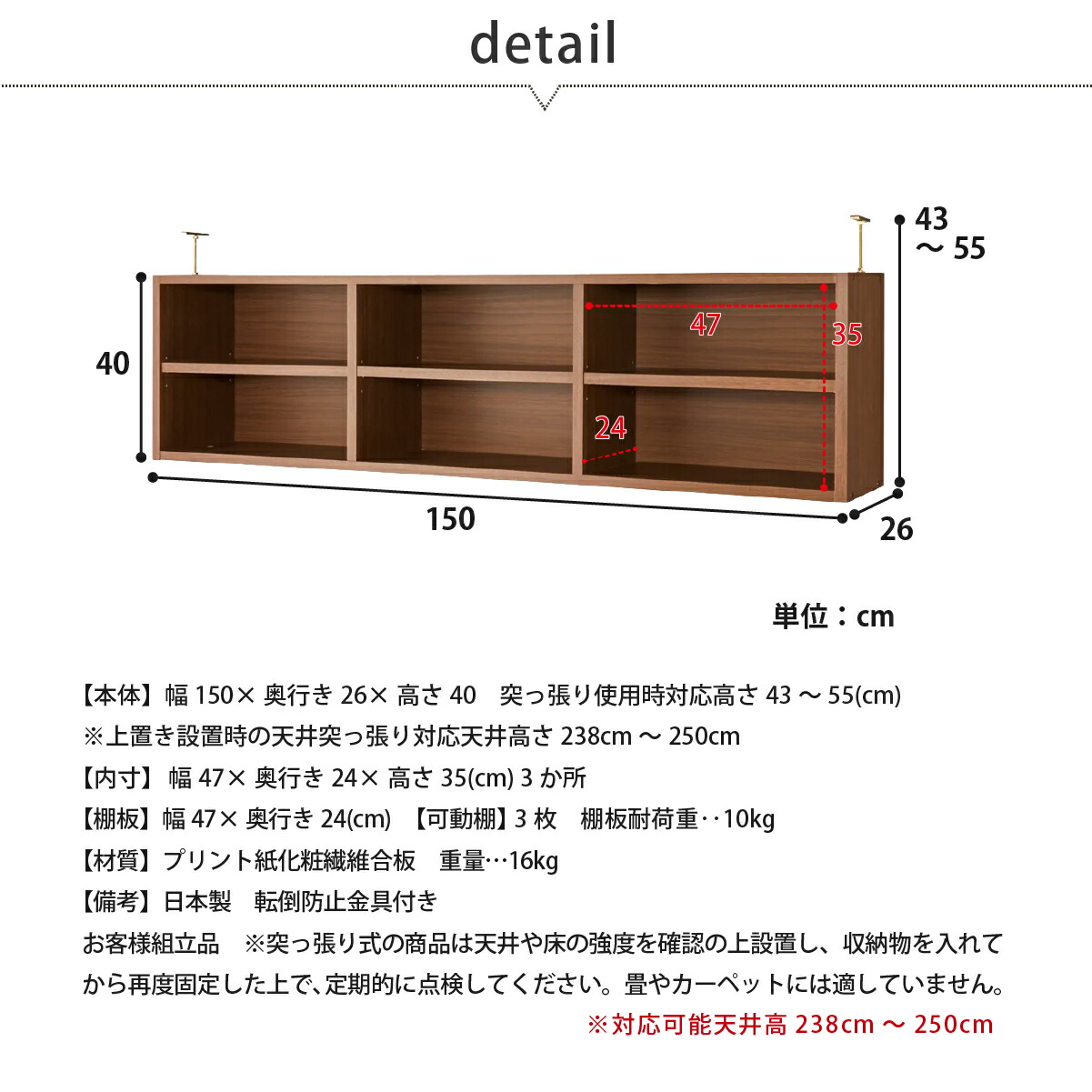 【サイズ】[本体]幅150cm×奥行き26cm×突っ張り使用対応高さ43~55cm※突っ張り使用時対応高さ43~55cm